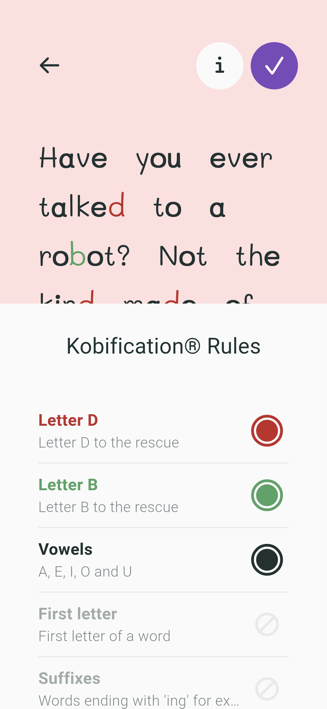 KOBI was built with dyslexic learners at the center. Right from the start, its key differentiator is clear: it is the only app that combines audiobook-style narration with active decoding practice. Its biggest breakthrough is that it seamlessly integrates audiobook-style narration with active decoding practice – something no other reading app on the market does.