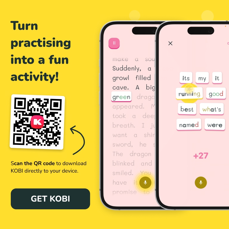 With KOBI Together mode, your child is prompted to read aloud. They can use support or go solo.