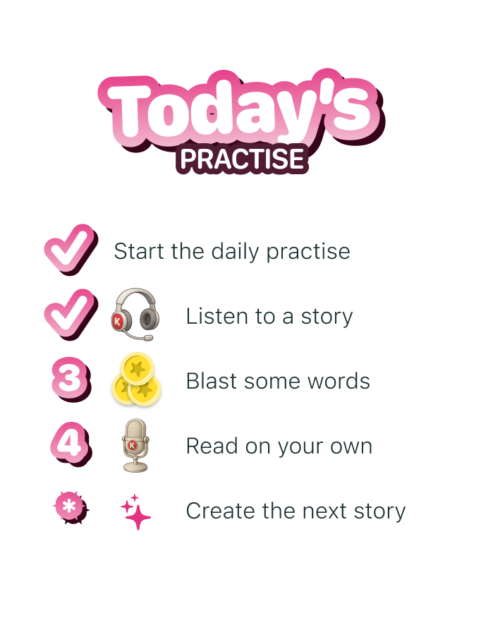 KOBI’s Daily Practice is designed around these principles: making reading feel doable, trackable, and fun.