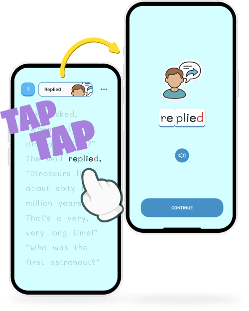 With two quick taps (‘TapTap’), kids hear the word spoken clearly in a warm, natural voice. It’s quick, intuitive, and perfect for decoding tricky words on the spot.