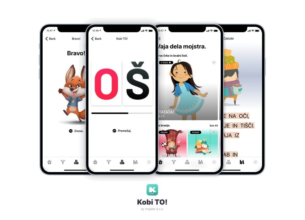 KobiTO! je namenjen treningu branja dvočrkovnih zvez. Ker aplikacija omogoča veliko ponovitev, se črkovni sklopi hitreje usidrajo v dolgoročni spomin kot celota. Otroci imajo KobiTO! radi, saj jih na koncu vsake kratke vaje čaka majhno presenečenje!