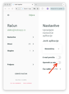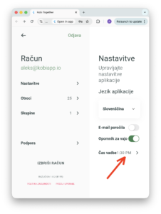 Kaj je Opomnik za vajo v aplikaciji KOBI?