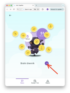 - Preglej današnje in tedensko branje. Za vsako bralno sejo otrok dobi žetonček.